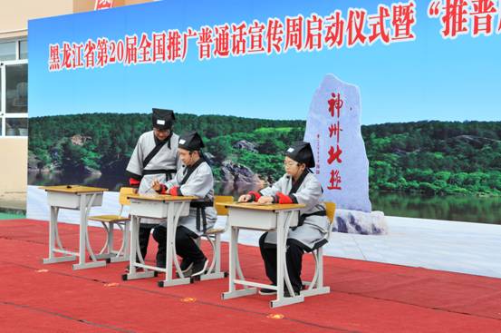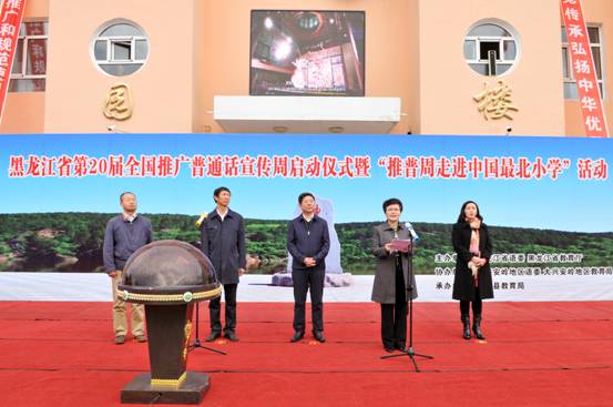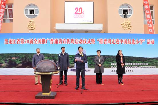 9月11日上午,由省语委、省教育厅主办,地区语委、地区教育局协办,漠河县教育局承办的全国第20届推普周启动仪式暨“推普周走进中国最北小学”活动在漠河县北极镇中心校隆重举行。
