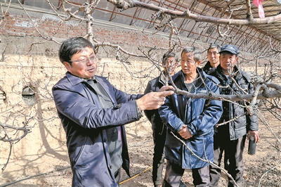 1月11日,西北农林科技大学蔡宇良教授深入陕西省铜川市耀州区石柱镇马咀村为村民现场指导樱桃果树栽培技术。本报记者 张劲松 摄