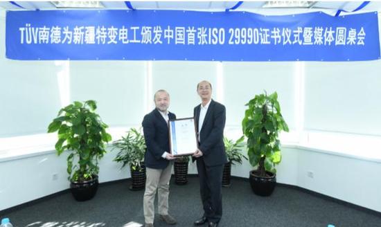 TüV南德为新疆特变电工培训学院颁发ISO 29990证书ISO 29990:2010是由国际标准化组织ISO制订发布的职业教育质量管理领域的国际标准。作为全球第一套针对职业教育与培训机构、社区大学等各种非学历教育学习服务提供者所建立的质量管理认证标准,该标准代表了非正规教育及培训等学习服务领域的国际通行要求。